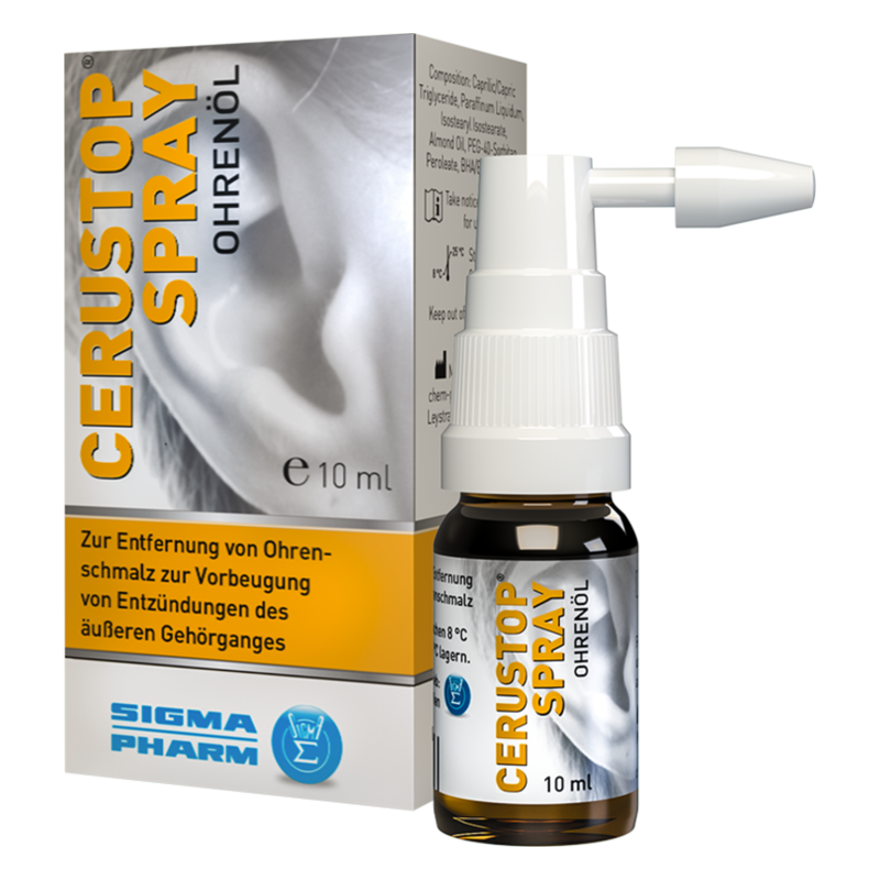 Cerustop® Ohrenöl Spray wird verwendet zur Entfernung von überschüssigem oder verhärtetem Ohrenschmalz (Cerumen) zur Vorbeugung von Entzündungen des äußeren Gehörganges sowie zur Reinigung der Ohrmuschel und des äußeren Gehörganges.