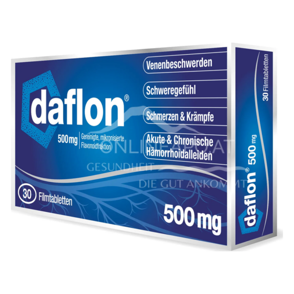 Die in Daflon 500 mg – Filmtabletten enthaltenen Substanzen wirken auf die großen Venen und die feinen Haargefäße. Sie verringern sowohl die zu starke Dehnbarkeit als auch die krankhaft gesteigerte Durchlässigkeit der Gefäßwände für Blutflüssigkeit. Zugleich wird das Fassungsvermögen der Venen für Blut reduziert. Dadurch werden die Symptome des Blutstaus, wie beispielsweise Schweregefühl oder Schmerzen in den Beinen bzw. nachts auftretende Wadenkrämpfe, verhindert.