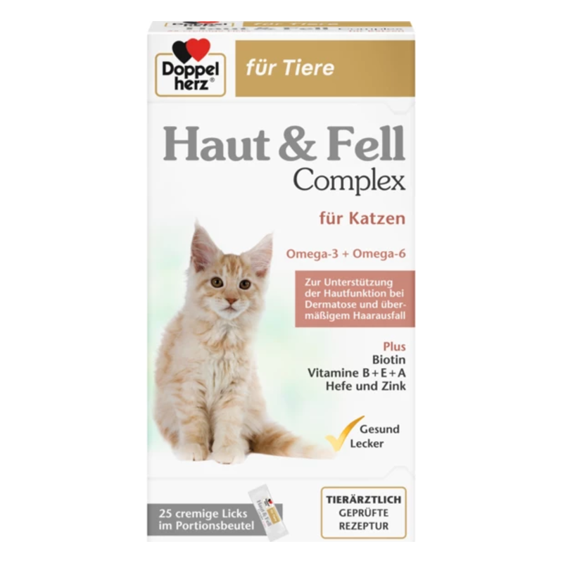 Doppelherz Haut & Fell Complex für Katzen steckt voller wertvoller Nährstoffe, die Ihre Katze dabei unterstützen.