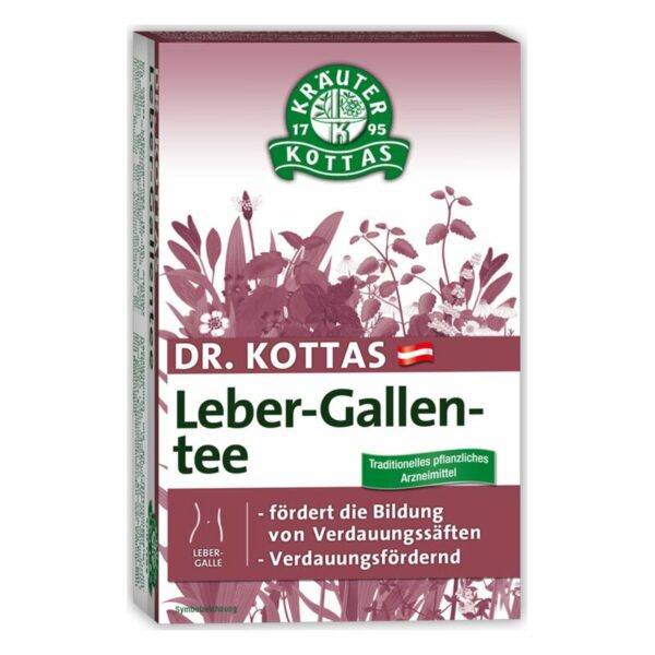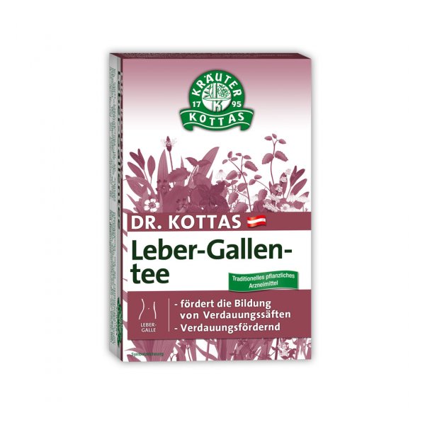 DR. KOTTAS Leber-Gallentee ist ein traditionelles pflanzliches Arzneimittel zur Anwendung bei milden Verdauungsbeschwerden wie Völlegefühl und Blähungen.