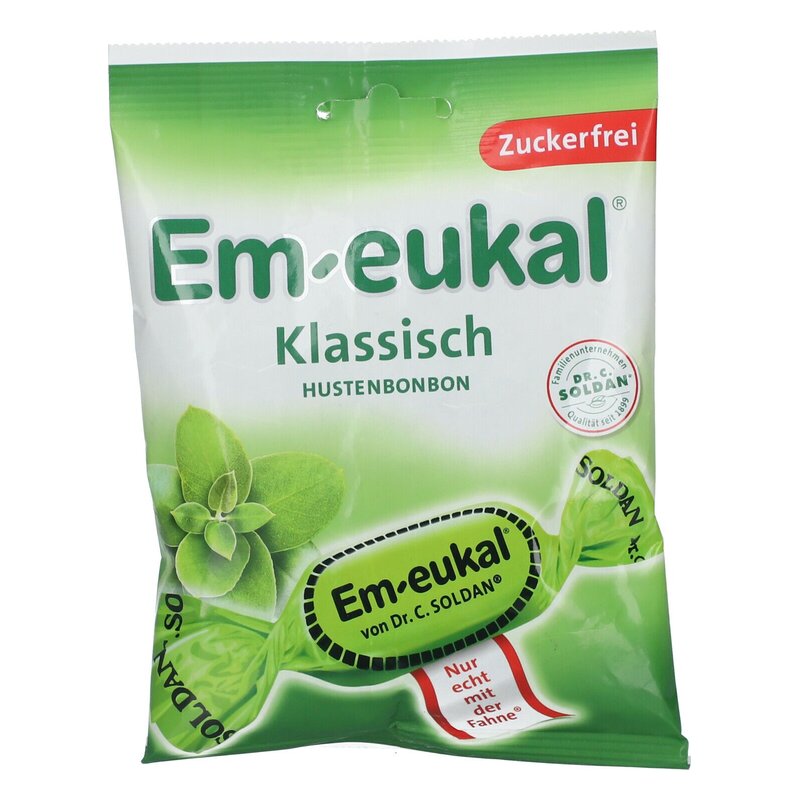 Dieses Markenzeichen garantiert höchste Qualität. Bis in die 1950er Jahre von Ärzten verschrieben und dank sorgfältigster Rohstoffauswahl bis heute unerreicht. Für Em-eukal® werden nur hochwertigste natürliche Zutaten wie Extrakte, Öle und Aromen verwendet.Wirksamer Schutz auf gesunde Weise: Diese besonderen Zuckerlspezialitäten bestechen nicht nur durch ihren unverwechselbaren Geschmack. Sie sind vor allem eine wertvolle Wohltat in höchster Dr. C. SOLDAN® Qualität. Das klassische Rundumwohlfühlbonbon® mit einer einzigartigen Kombination aus Eukalyptusöl und Menthol.