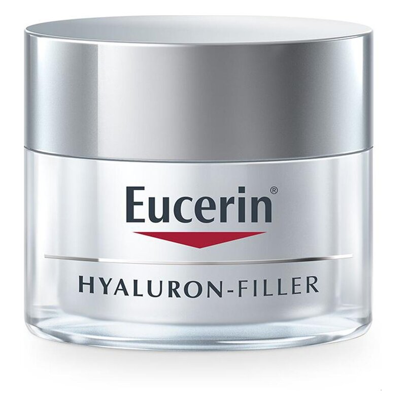 Eucerin HYALURON-FILLER Tagespflege für trockene Haut enthält eine einzigartige Kombination kurz- und langkettiger Hyaluronsäuren, um die Falten von innen heraus aufzufüllen, sowie bioaktives Saponin, dass die natürliche, hauteigene Hyaluron-säureproduktion zusätzlich anregt, um die Hautfeuchte zu verbessern und Falten zu mildern. LSF 15 mit UVA-Schutz beugt vorzeitiger Hautalterung und dem tiefer werden von Falten vor. Die Pflege ist eine ausge-zeichnete Make-up-Grundlage