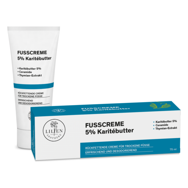 Enthält spezielle Aktivstoffe, wie Karitébutter 5%, Ceramide und Thymian-Extrakt, die die Haut intensiv pflegen und die Hauterneuerung fördern. Für wirkungsvolle Ergebnisse bei rauen und trockenen Füssen. Diese Fußcreme verleiht ein angenehmes Frischegefühl, wirkt desodorierend und erfrischt müde Füße. Bereits nach den ersten Anwendungen fühlen sich die Füße schön und geschmeidig an.