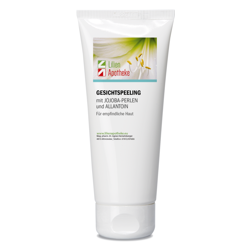 Sanftes mechanisches Peeling für die Gesichtshaut. Die aus Jojoba gewonnenen Körnchen entfernen abgestorbene Zellen, glätten die Haut und machen sie weich. Allantoin spendet Feuchtigkeit, beruhigt und sorgt für optimalen Hautkomfort. So wird der Teint strahlend schön. Ideal für empfindliche Haut.
