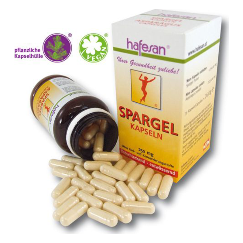 hafesan Spargel 250 mg Kapseln, 75 Stück Packung, erhalten Sie in allen Apotheken.