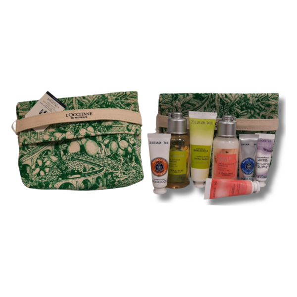 Enthält 7 Stück Pflegepordukte sowie eine hübsche Tasche.