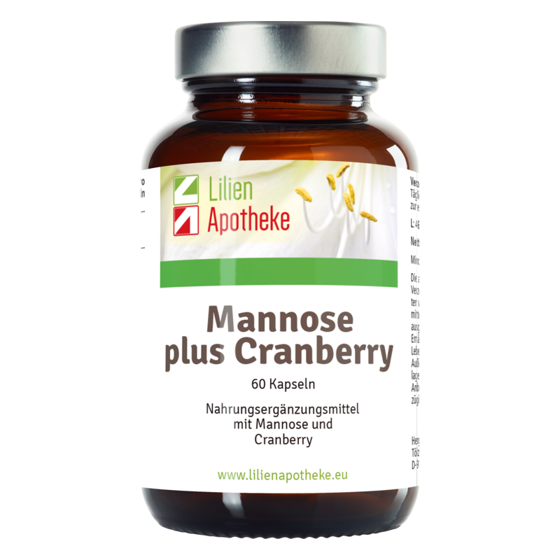 D-Mannose, Überzugsmittel Hydroxypropylmethylcellulose (Kapselhülle), Füllstoff mikrokristalline Cellulose, Cranberry-Extrakt