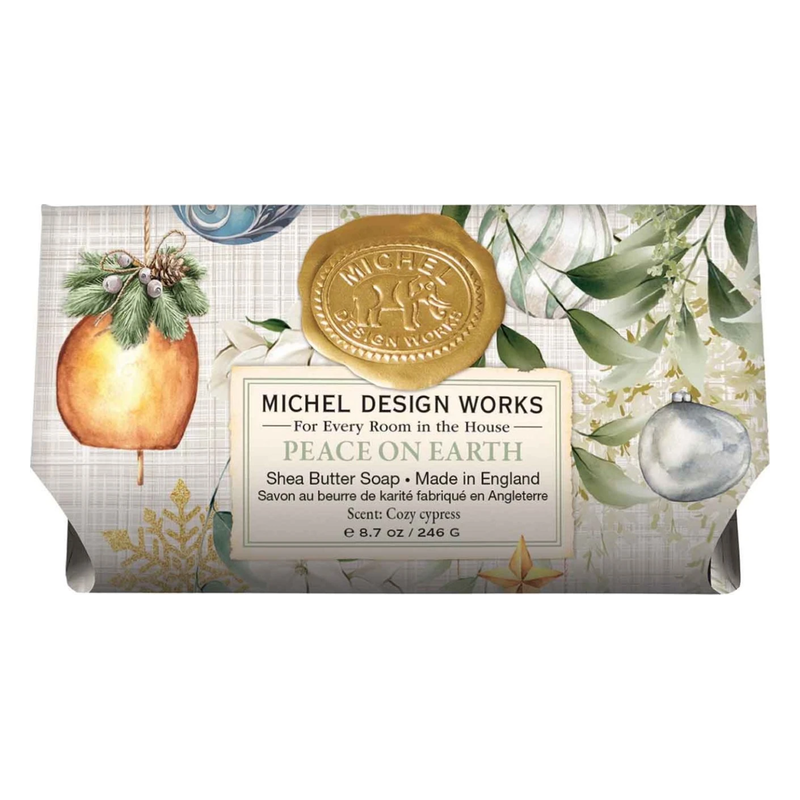 Tauche ein in ein Badeerlebnis mit der Badeseife Peace On Earth. Diese übergroße Seife ist dreifach gemahlen und mit feuchtigkeitsspendender Sheabutter angereichert, um trockene Haut zu beruhigen und zu pflegen. Hergestellt in England, bietet sie nicht nur höchste Qualität, sondern ist auch wunderschön verpackt – ein perfektes Geschenk für dich oder deine Liebsten. Die Seife enthält nur die feinsten Zutaten wie rein pflanzliches Palmöl und Glycerin. Verwöhne dich täglich mit dem Duft von Zypresse vermischt mit Mandarinen und Amber.