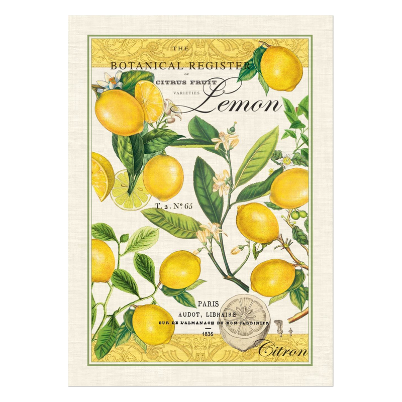 Luxus & Eleganz kann so praktisch sein: Baumwoll Küchenhandtuch mit farbenfrohem Zitronenmotiv von Michel Design "Lemon Basil" Ein praktisches Highlight in jeder Küche – die großen Geschirrtücher von Michel Design. Reine Baumwolle und die kräftigen Farben der außergewöhnlichen Botanikmotive verwandeln Kochen und sogar Spülen in eine kleine Freude im Alltagsleben.