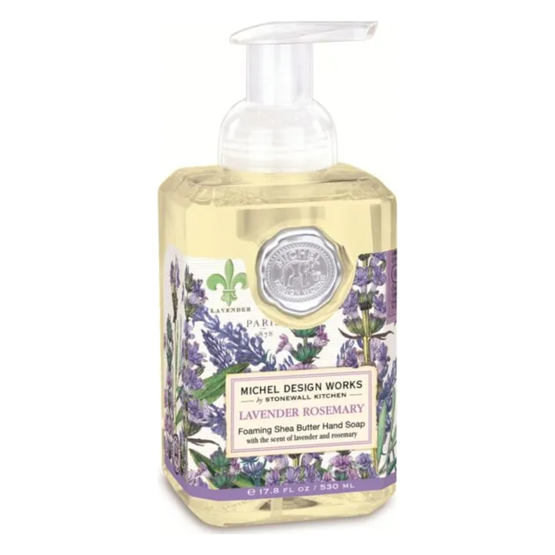 Pflegende Handseife / Schaumseife von Michel Design mit Sheabutter, Aloe Vera und natülichen Pflanzenextrakten – "Lavender Rosemary" – herrlich duftend, sanft schäumend, mit natürlichen und hochwertigen Inhaltsstoffen hergestellt. Pflegt die Hände mit feuchtigkeitsspendender Shea Butter und heilender Aloe Vera, in luxuriösem Spender