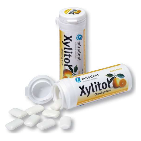 Zahnpflegekaugummi nach jeder Mahlzeit, wirkt kariespräventiv und plaquehemmend.