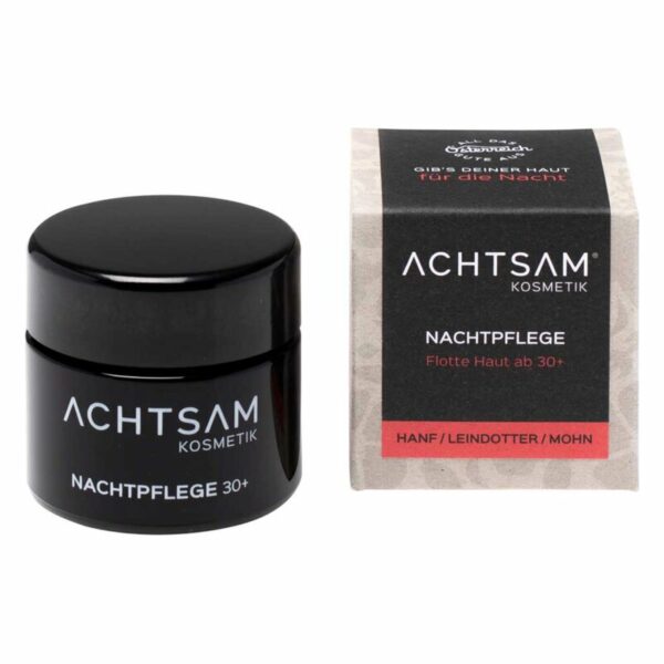 Für unsere flotte Haut ab 30+ darf es in der Nacht ruhig schon etwas reichhaltiger sein. Wie gut, dass unser Bio-Mohnöl fast 73 % Linolsäure enthält! Denn Linolsäure ist nicht nur ein wichtiger Bestandteil der menschlichen Haut, sondern auch einer der wirkungsvollsten Anti-Aging-Inhaltsstoffe überhaupt. Außerdem pflegen unsere Haut noch Bio-Hanf-, Bio-Leindotter-, Bio-Sonnenblumen- und Bio-Nachtkerzenöl, sowie jede Menge wertvoller Pflanzenextrakte, während wir schön träumen!