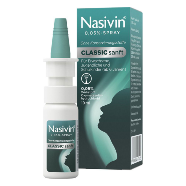 Nasivin® ohne Konservierungsstoffe Dosierspray für Erwachsene und Schulkinder ist ein Mittel zur Anwendung in der Nase (Rhinologikum) und enthält das Alpha-Sympathomimetikum Oxymetazolin
