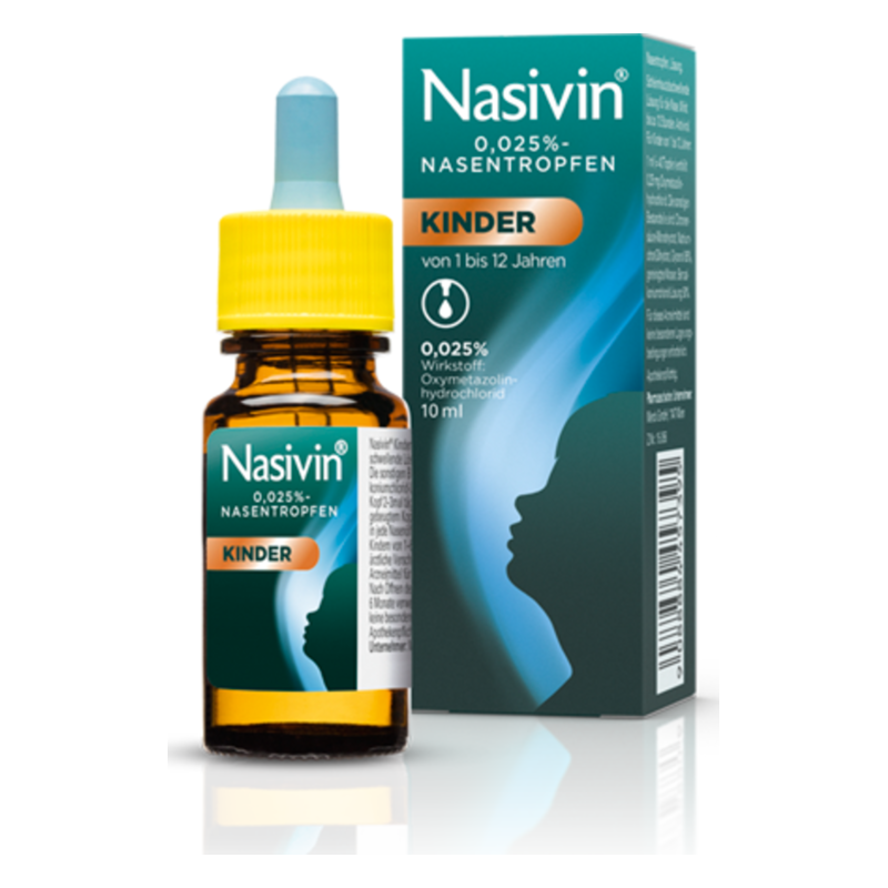 Nasivin® Kinder 0,025% Nasentropfen ist ein Produkt für die Nase in einfacher Tropfenform. Es befreit die Nase, sodass Ihr Kind wieder mehr Freude am Spielen und Lernen hat. Der Wirkstoff Oxymetazolin befreit die Nase und wirkt zudem entzündungshemmend und antiviral und ermöglicht bis zu 12 Stunden freieres Atmen.