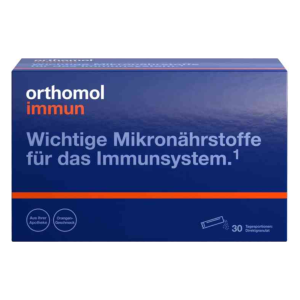 Orthomol Immun Direktgranulat Orange 30er-Packung ist ein Nahrungsergänzungsmittel mit wichtigen Mikronährstoffen für das Immunsystem. Mit Orthomol Immun Direktgranulat Orange 30er-Packung können Sie außerdem Ihre körpereigenen Widerstandskräfte, z.B. bei häufigen wiederkehrenden Infektionen der Atemwege o.ä. stärken. Gerade in diesen Situationen besteht ein erhöhter Bedarf an Mikronährstoffen.