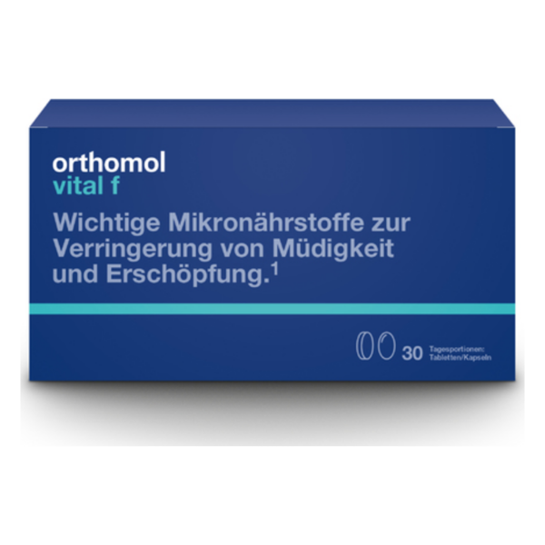 Orthomol Vital f ist eine Mikronährstoffkombination für Frauen. Denn in Phasen hoher Belastung, sei es z. B. durch die Doppelbelastungen von Familie und Beruf oder die Betreuung pflegebedürftiger Angehöriger, neigen wir dazu eine ausgewogene Ernährung zu vernachlässigen. Es enthält wichtige Mikronährstoffe u.a. B-Vitamine und Magnesium zur Verringerung von Müdigkeit und Erschöpfung, sowie Omega-3-Fettsäuren und Calcium.