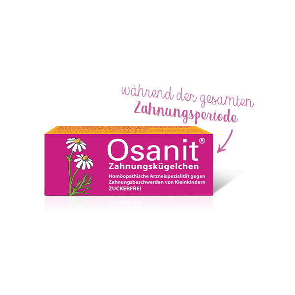 Osanit Zahnungskügelchen sind eine homöopathische Arzneispezialität. Die Homöopathie ist eine Regulationstherapie. Die Behandlung mit homöopathischen Arzneimitteln führt zur Anregung und Stärkung der körpereigenen Selbstheilungskraft. Durch die Verwendung des Zuckeraustauschstoffes Xylit wird der Entstehung von Karies vorgebeugt. Osanit Zahnungskügelchen werden zur Anregung der Selbstheilungskraft bei Zahnungsbeschwerden bei Kleinkindern verbunden mit heftigen Schmerzzuständen, Zahnungsfieber, Zahnungsdurchfall, Reiz- und Unruhezuständen und Schlaflosigkeit angewendet.Zahnungskügelchen werden aus fünf homöopathischen Einzelkomponenten hergestellt, wobei jede dieser Komponenten einen Beitrag zur Wirksamkeit leistet. Die homöopathischen Arzneimittelbilder dieser Komponenten entsprechen speziell den Beschwerden während der Zahnungszeit, bei denen Schmerzen, Fieber, Durchfall, Krämpfe, auffallende Reizbarkeit, Unruhe und Schlaflosigkeit im Vordergrund stehen. Die Anwendung dieses homöopathischen Arzneimittels in den genannten Anwendungsgebieten beruht ausschließlich auf homöopathischer Erfahrung.