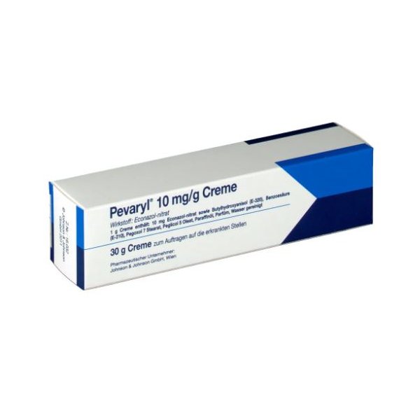 1g Creme enthält: 10 mg Econazol-nitrat sowie Butylhydroxyanisol (E-320, Benzoesäure (E-210), Pegoxol 7 Stearat, Peglicol 5 Oleat, Parrafinöl, Parfüm, Wasser gereinigt)