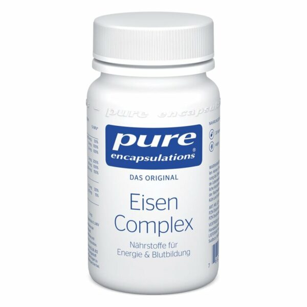 Eisen ist an der Bildung von Hämoglobin (roter Blutfarbstoff) beteiligt und somit für den Sauerstofftransport bedeutend. Eisen alleine kann manchmal zu wenig sein, denn für einen effektiven Eisenstoffwechsel sind Co-Faktoren (B-Vitamine, Kupfer und Vitamin C) von Bedeutung. Der Eisenbedarf ist bei Frauen, Ausdauersportlern und Personen im Wachstum häufig erhöht. Auch Veganer und Vegetarier sollten auf eine adäquate Eisenaufnahme achten. Eisen Complex von Pure Encapsulations enthält gut bioverfügbares Eisen (Eisenglycinat) sowie pflanzliches Eisen aus dem „Phytavail-Komplex“, welcher aus braunem Senf (Brassica juncea) gewonnen wird. Dieser speziell kultivierte Senf ist reich an natürlichem Eisen. Eisen Complex ist besonders effektiv, da auch die unterstützenden Co-Faktoren enthalten sind.