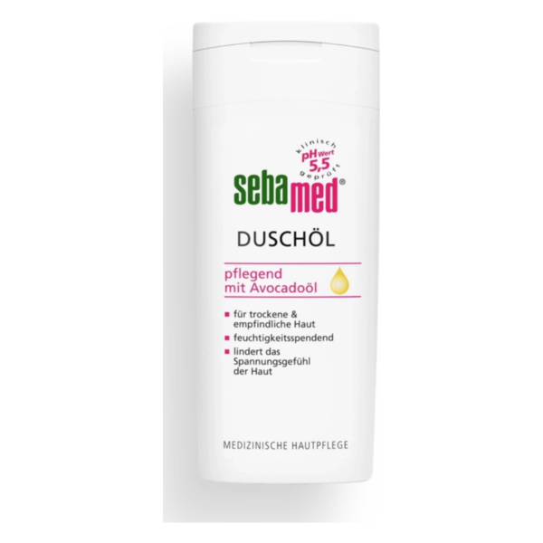 Für die schonende und besonders pflegende Reinigung der empfindlichen und trockenen Haut. sebamed Duschöl ist eine leicht schäumende Emulsion. Ihr hochwertiger Pflege- und Schutzkomplex mit natürlichem Lecithin und Avocadoöl führt der Haut beim Duschen intensiv pflegende Lipide zu, unterstützt den Schutz vor Fett- und Feuchtigkeitsverlust und macht auch die sehr trockene Haut fühlbar zarter und geschmeidiger. Der pH-Wert 5,5 unterstützt den natürlichen Hautschutzmantel und macht sie widerstandsfähiger. Für tägliches Duschen geeignet.