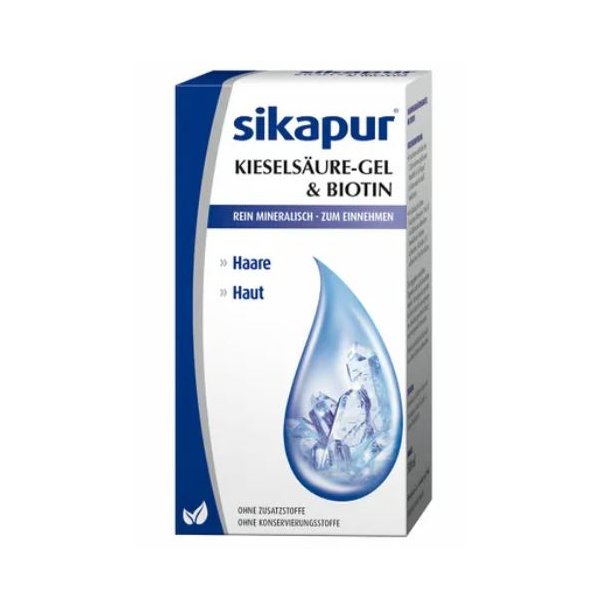 Sikapur® Kieselsäure-Gel & Biotin enthalt Biotin und Silicium- Gel (Kieselsäure-Gel) als Verbindung aus Silicium, Sauerstoff und Wasser in feinstverteilter, kolloidaler Form.