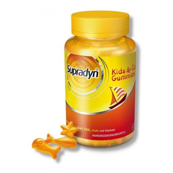 Die leckeren Fruchtgummis von Supradyn® enthalten die einzigartige Kombination aus DHA, eine der wichtigsten Omega-3 Fettsäuren, Cholin und Vitaminen. Die Gummies unterstützen den Energiestoffwechsel und leisten einen wichtigen Beitrag für die körperliche und geistige Leistungsfähigkeit bei Erwachsenen und Kindern ab 4 Jahren.